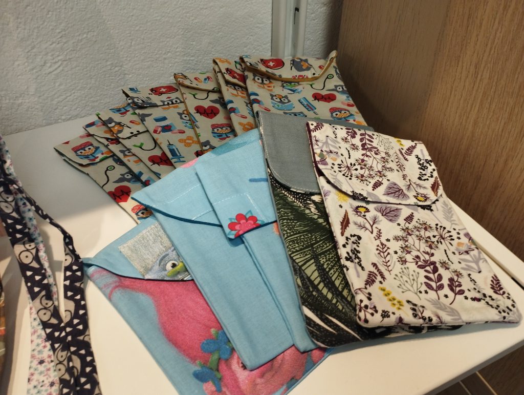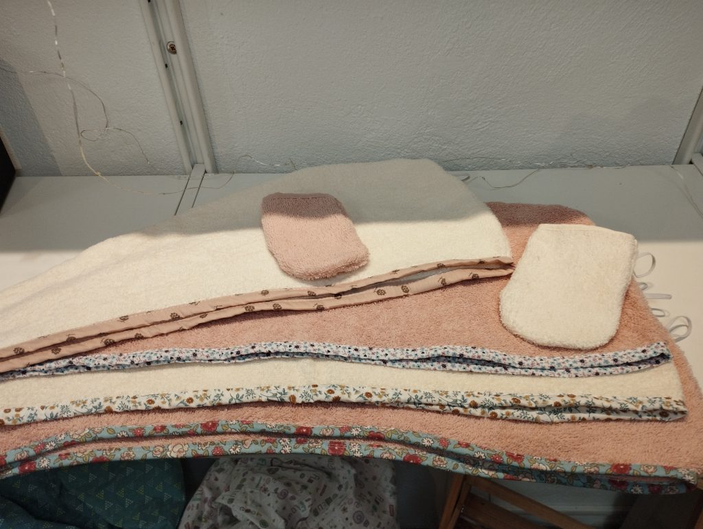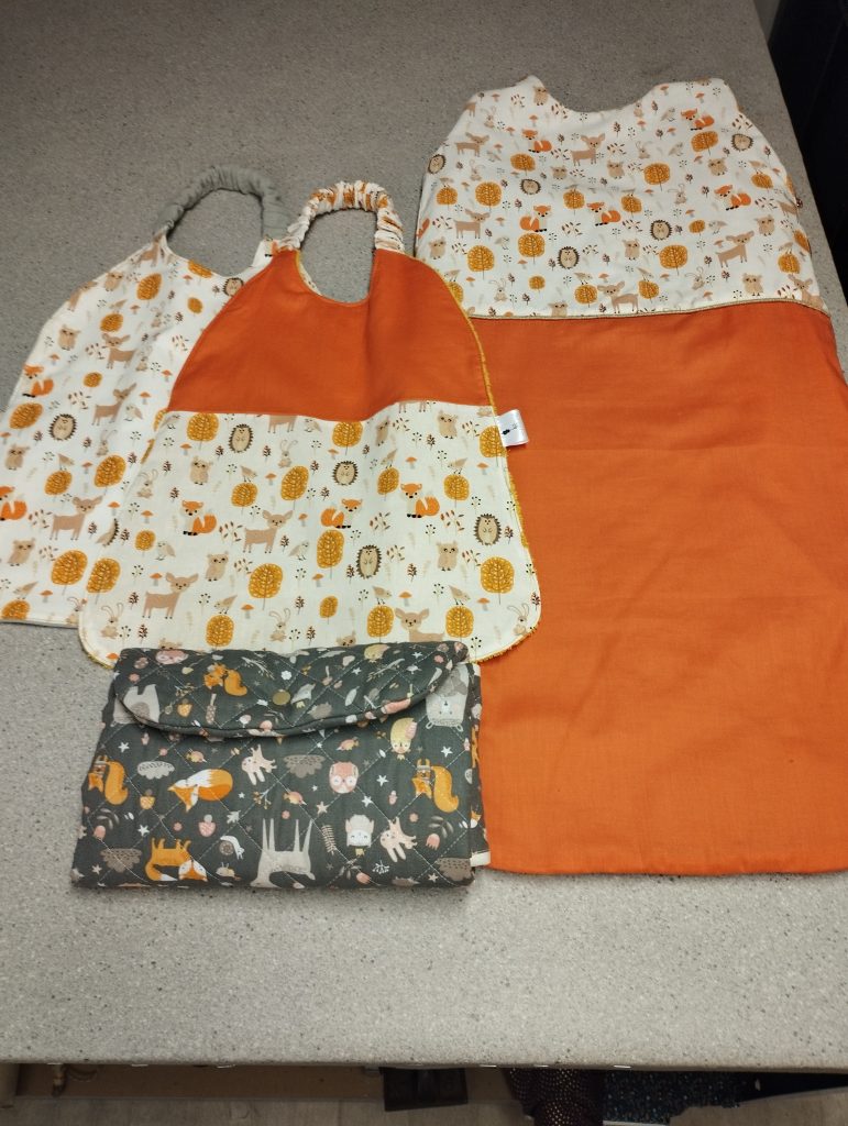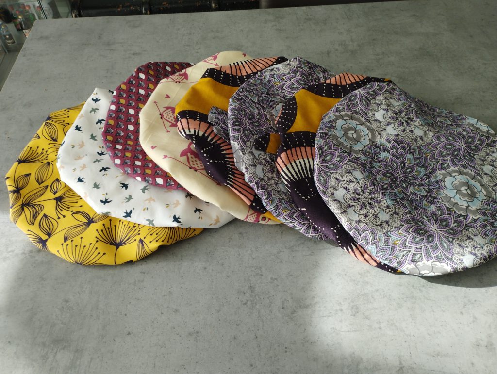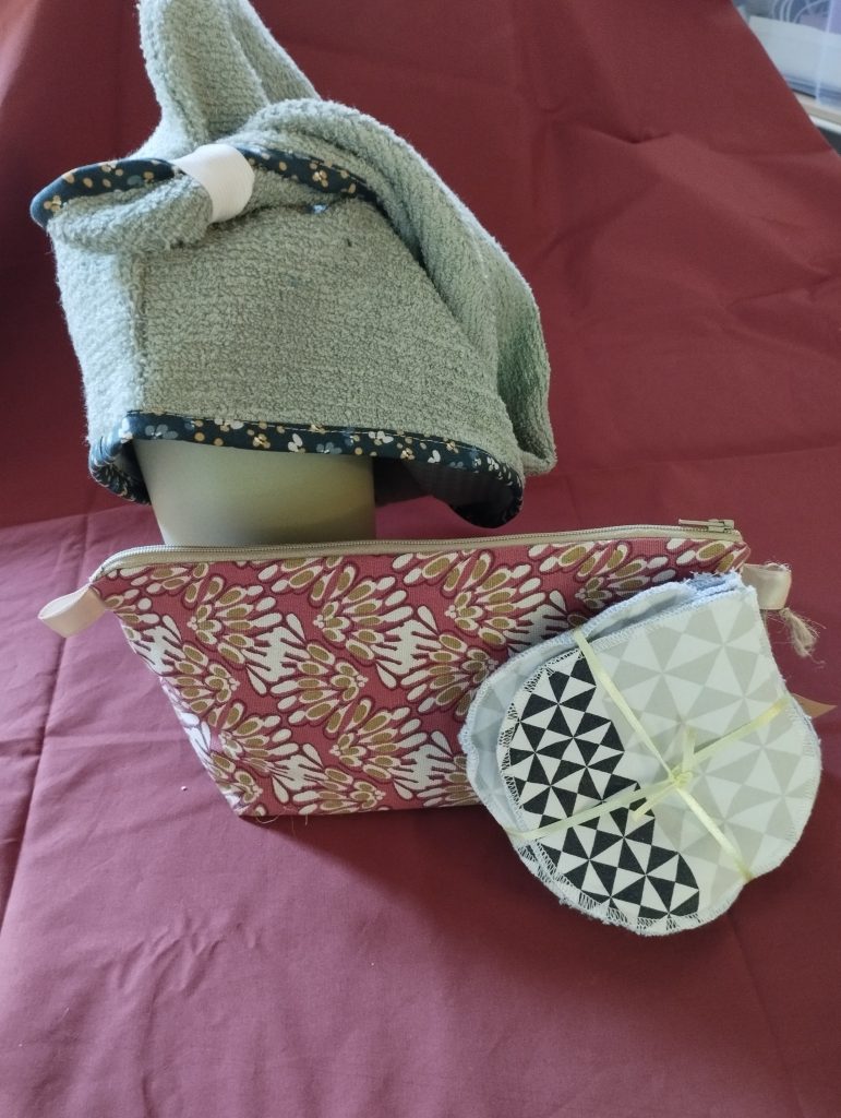 Bonnet de soins de cheveuxTransformationPersonnalisationPunching ball enfantbouillotte sèchepochette soignantBananesFoulardTurban sortie de douchepochette PC sur mesurehousse de matelas de camping carrembourage amovible mannequin de formation de secourskits naissancekit toilette lingette trousse et turbankit poupéerobe sur mesureblouse sur mesure soiebavoir, lingette, gants, bébéporte poupéekit naissancegigoteuse poupéecharlotte plats PULbroderie main coussin alliancecréation d’une poche pour prothèsechouchou et folchies